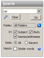 Highlight a Correspondent and click the Search in (Correspondent) Folder button (F6) to quickly search through the mails from a single correspondent. |